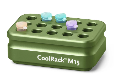 Thermo-Conductive Tube Rack, holds 15 x 1.5 or 2ml microcentrifuge tubes, cylindrical wells, green