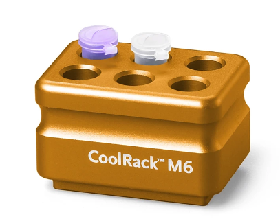Thermo-Conductive Tube Rack, holds 6 x 1.5 or 2ml microcentrifuge tubes, cylindrical wells, orange